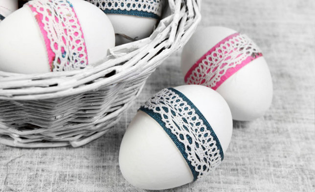 Απλό και χαριτωμένο όπως λένε και οι Γάλλοι, μία απλή ταινία δαντέλας γύρω από λευκά βρασμένα αυγά θα τους δώσει ένα πιο εκλεπτυσμένο στυλ