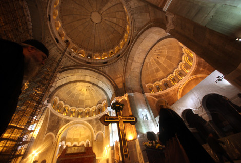 Μια γυναίκα προσεύχεται στην εκκλησία του Αγίου Σάββα, στο Βελιγράδι, της Σερβίας.