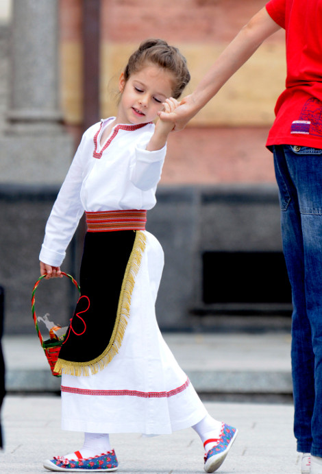 Ενα κοριτσάκι χορεύει μπροστά από την εκκλησία, μετά τη λειτουργία της Ανάστασης, στη βοσνιακή πόλη της Μπάνγια Λούκα, 240 χιλιόμετρα βορειοδυτικά του Σεράγεβο, εκεί που οι Σερβοβόσνιοι γιόρτασαν το Πάσχα.
