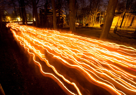 Σε αυτή τη φωτογραφία που τραβήχτηκε με ειδική τεχνική, οι ορθόδοξοι πιστοί περπατούν κρατώντας κεριά, μετά τα μεσάνυχτα της Ανάστασης, έξω από μια εκκλησία στην Αγία Πετρούπολη, της Ρωσίας.