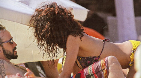 Το ζευγάρι έκανε τις βουτιές του στον Πάνορμο και στη συνέχεια χαλάρωσε στην παραλία. Ο ερωτάς τους δεν κρυβόταν και ο ένας αδυνατούσε να ξεκολλήσει από τον άλλο. Φιλιά, αγκαλιές και χάδια και διαχυτικοί όσο ποτέ. Ετσι τους συνέλαβε ο φωτογραφικός φακός των περιοδικών OK και Hello.