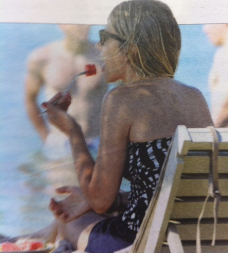 Σύμφωνα με την Εspresso, η πρώην βουλευτής του ΠΑΣΟΚ, ήταν κάτασπρη, καθόταν κάτω από την ομπρέλα και έτρωγε καρπούζι. Σύμφωνα πάντα με το δημοσίευμα η Εύα Καϊλή είναι εμφανώς αδυνατισμένη σε σημείο που κάποιοι δεν την αναγνώρισαν.