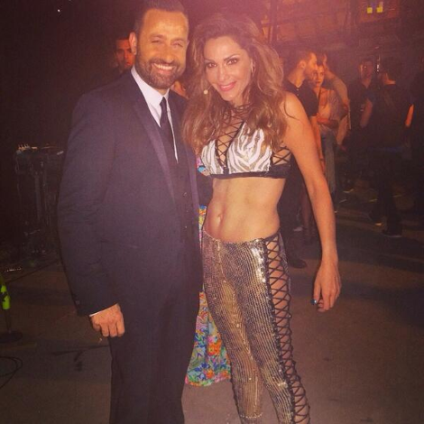 Η τραγουδίστρια εμφανίστηκε στη σκηνή φορώντας ένα στενό παντελόνι με παγιέτες