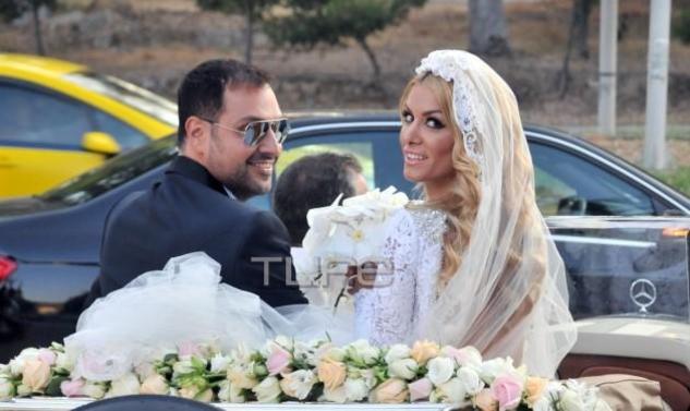 Η νύφη έφθασε στην εκκλησία λίγο μετά τις επτά το απόγευμα, με ένα εντυπωσιακό αυτοκίνητο και έλαμπε μέσα στο λευκό δαντελένιο νυφικό της. Τα μαλλιά της σχημάτιζαν ελαφριές μπούκλες και επέλεξε να φορέσει πέπλο, ενώ στα χέρια της κρατούσε μια κρεμαστή νυφική ανθοδέσμη με λευκές ορχιδέες.