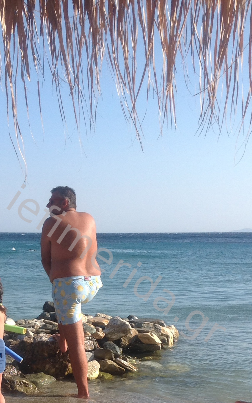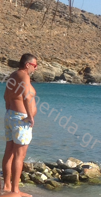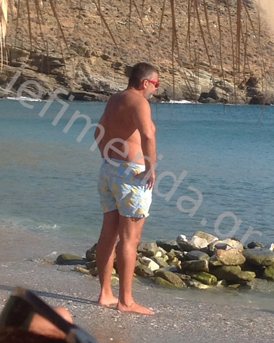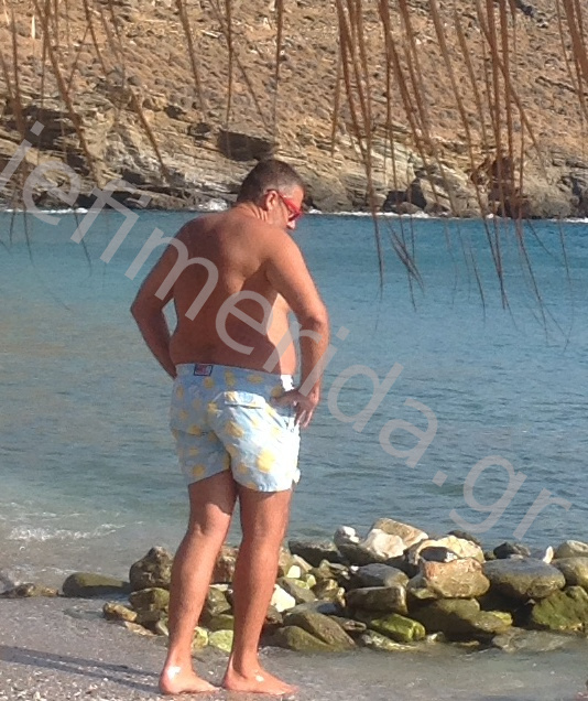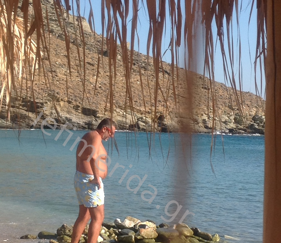 Ο φωτογραφικός φακός τον εντόπισε και τον απαθανάτισε με λίγα παραπανίσια κιλά να χαλαρώνει σε μία από τις ομορφότερες παραλίες της Τήνου, τα Καλύβια.