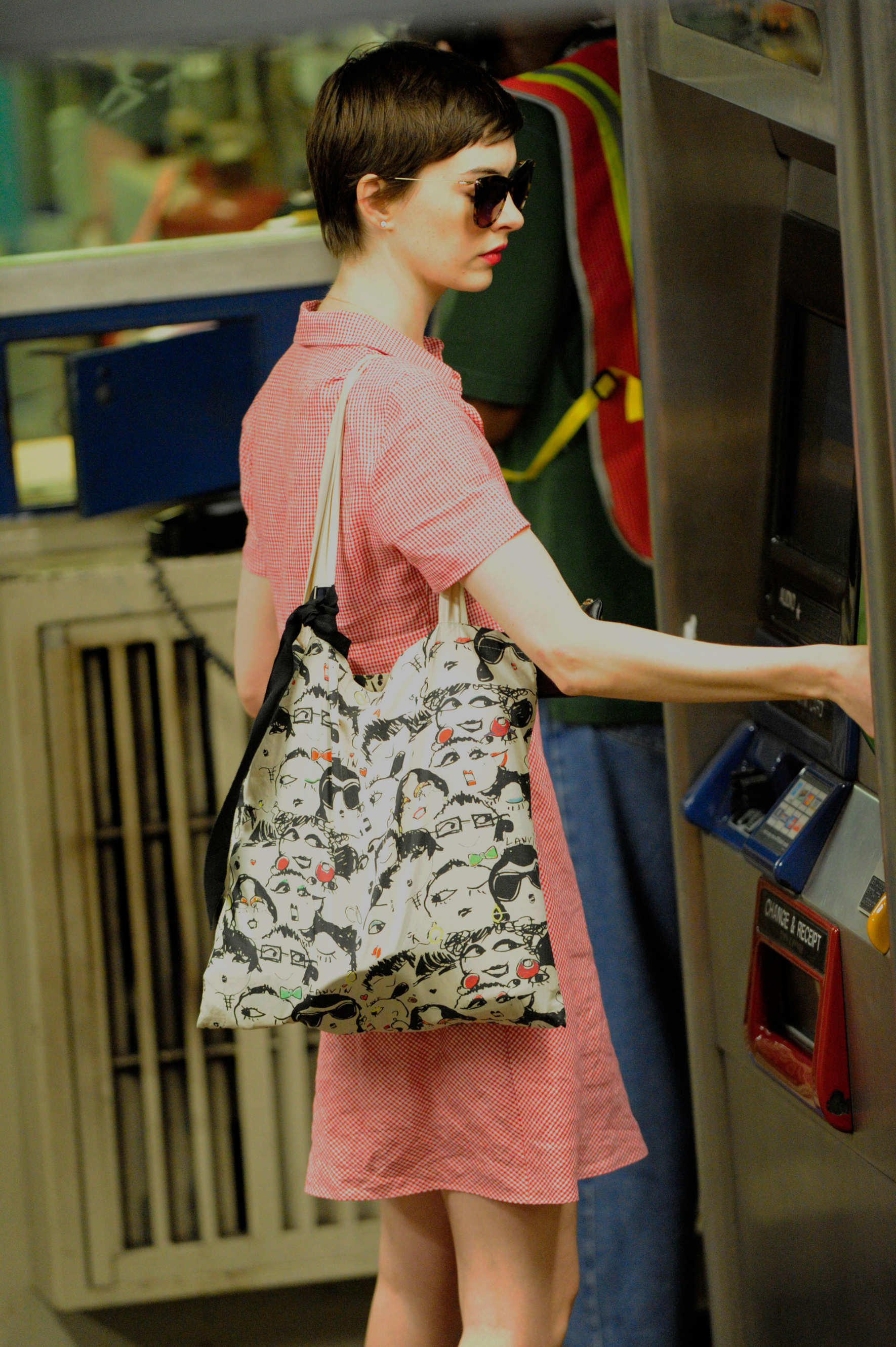 Η Αν Χάθγουέι βγάζει εισιτήριο.