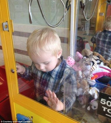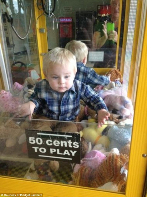 Κοιτώντας γύρω της για να τον εντοπίσει, συνειδητοποίησε πως ο μικρός είχε σκαρφαλώσει πάνω σε ένα κουτί-αυτόματο πωλητή παιχνιδιών...