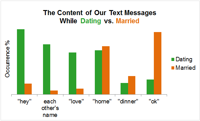 Αυτό απέδειξε μία αναλύτρια δεδομένων, παίρνοντας ως παράδειγμα την ίδια και το σύζυγό της. Η Αλις Ζάο γνώρισε το σύντροφό της τον Οκτώβριο του 2008 και άρχισαν να βγαίνουν ραντεβού. Μετά από ένα χρόνο της έκανε δώρο ένα έγγραφο με όλα τα μηνύματα που είχαν ανταλλάξει από τη στιγμή που ξεκίνησε η σχέση τους.Τώρα, στην έκτη τους επέτειο, εκείνη αποφάσισε να αξιοποιήσει το συγκεκριμένο δώρο κάνοντας ανάλυση και συγκρίνοντας τα μηνύματα εκείνα με αυτά που έχει ανταλλάξει το ζευγάρι τον τελευταίο χρόνο, ως αρραβωνιασμένοι και εσχάτως νεόνυμφοι.
