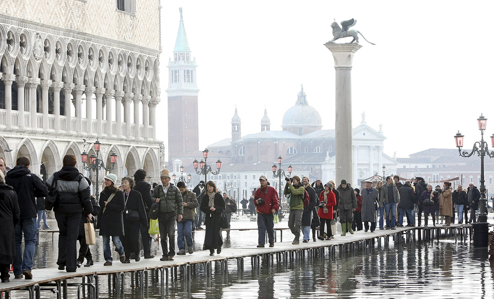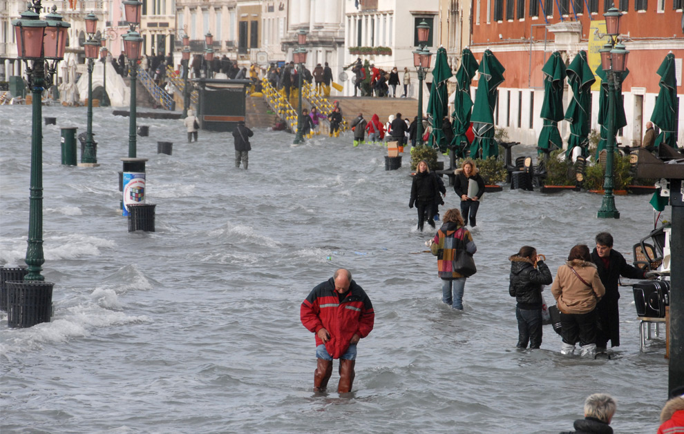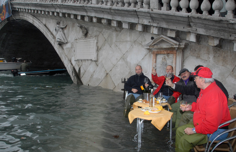 Ωστόσο, τι γίνεται όταν στην Βενετία έχει κακοκαιρία και τα νερά... φουσκώνουν; Τότε η πόλη πλημμυρίζει και οι κάτοικοι της τρέχουν να σώζουν ότι... σώζεται, αν και οι τουρίστες το χαίρονται.