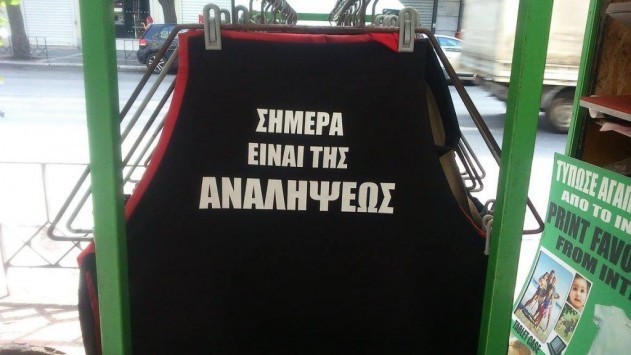 Ένα περίπτερο λοιπόν, στην Τσιμισκή, στη Θεσσαλονίκη...που τυπώνει συνθήματα πάνω σε μπλουζάκια καπέλα και ποδιές, έφτιαξε τα... επίκαιρα που βλέπετε στις φωτογραφίες...