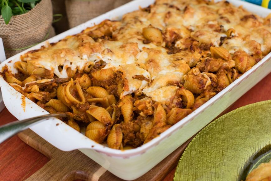 Ρίχνουμε από πάνω τη σάλτσα ανακατεύουμε να πάει παντού η σάλτσα μας και σκεπάζουμε με την υπόλοιπη γραβιέρα. Ψήνουμε στους 220 στο γκρίλ για 5 λεπτά περίπου μέχρι να λιώσει το τυρί.